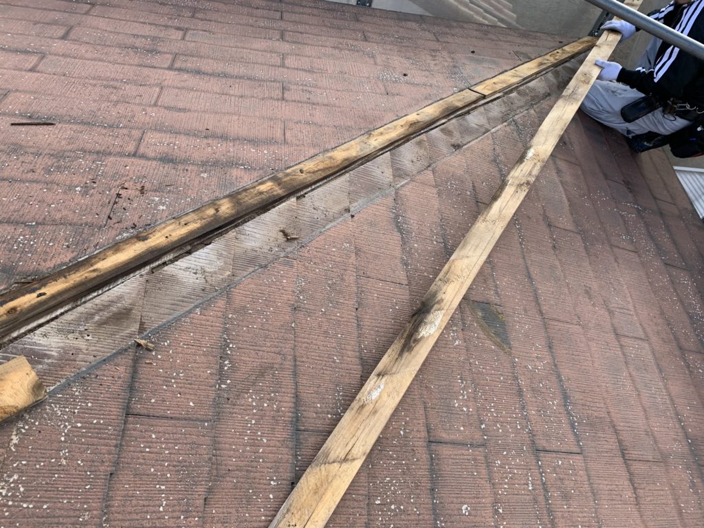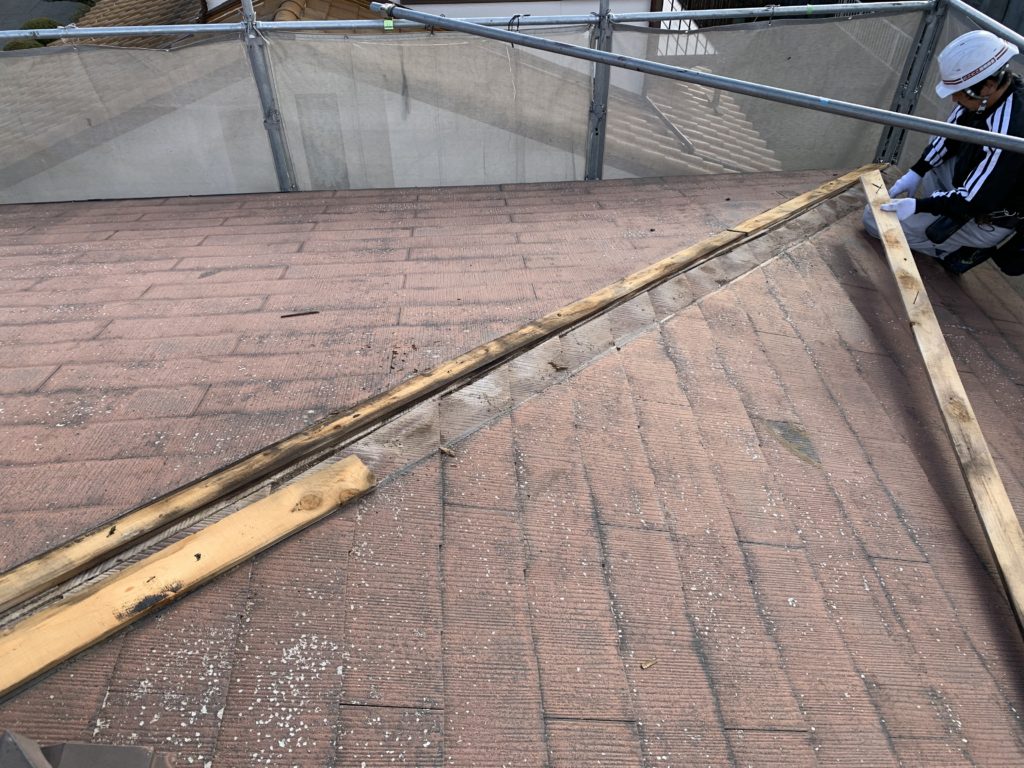 現場親方ブログ2022.12.20神戸市北区 屋根工事【カバー工法】棟撤去神戸北店の山下です。本日は神戸市北区W様邸にて屋根工事【カバー工法】施工しております!今日の作業は棟板金と棟の木下地撤去。その後、ルーフィングを張ってから新しい棟下地を取り付けて行きます。神戸市三田市の朝は本当に冷え込みますので、朝の早いうちは霜が下りていたり屋根が凍っていたりで作業ができません💦お日様が上がってきたら、職人さんたちフル稼働で作業を進めて行きます。ばっちり仕上げに向けて本日も頑張っております!