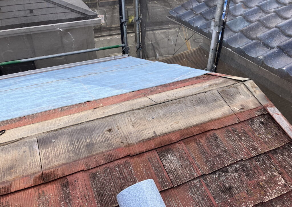 正式名称はアスファルトルーフィングといいます。防水シートのことです。しっかり貼り付けないと雨漏りの原因になります。
