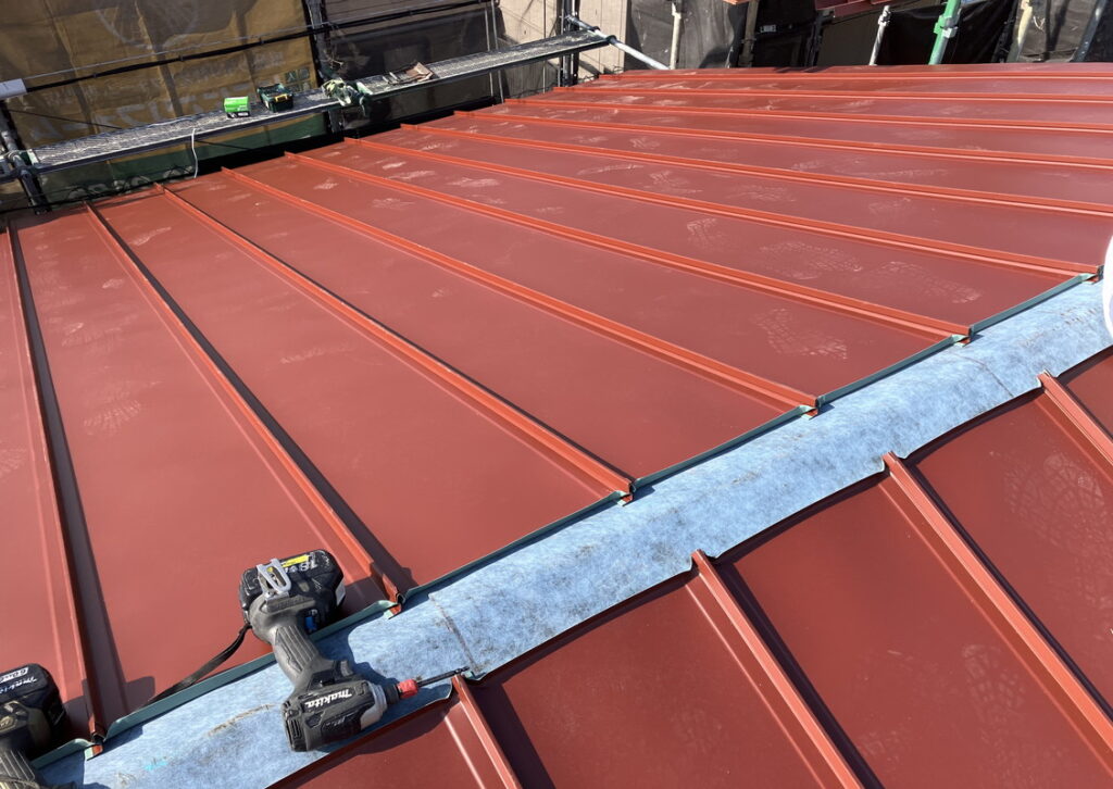 縦ラインの先端部分から雨水が入ってこないようにする為の物です。唐草同様ルーフィングに隙間が入らないように取付します。