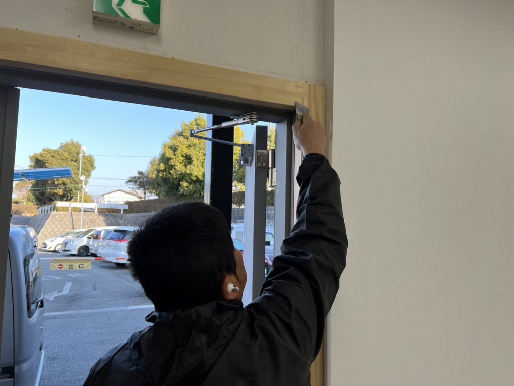 伊丹店です。豊中市の鉄扉のケレンをしています。ケレンとはもともとの塗料を剥がし取ったりすることです。ケレン後に塗装を行います。