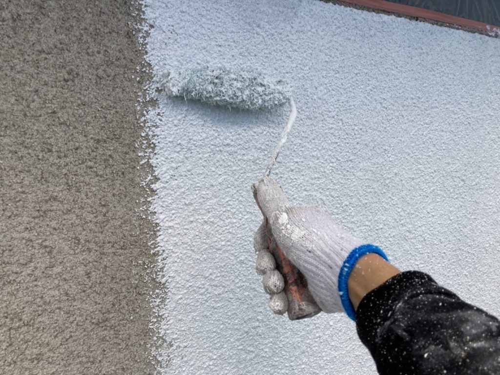 現場親方ブログ2023.01.18伊丹市 Y様邸 外壁塗装工事のご紹介外壁下塗り伊丹店です。伊丹市の外壁塗装の下塗りをしています。下塗り材(フィラー)といい不着性の高い下塗り材となっております。また吸い込みが少なく上塗りが綺麗に仕上がります。