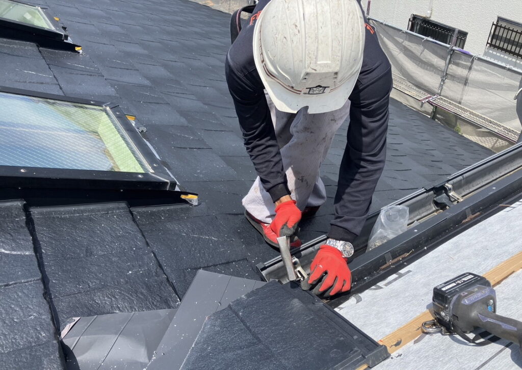 現場親方ブログ2025.06.13伊丹市 Y様宅 ルーガ葺きルーガ葺きこんにちは!にこにこリフォーム 屋根班です昨日に引き続いて伊丹市にお住いのY様のルーガ葺きをやっております。だんだんと暑くなってきておりますが お客様の笑顔の為に一枚一枚丁寧に作業を行っております。