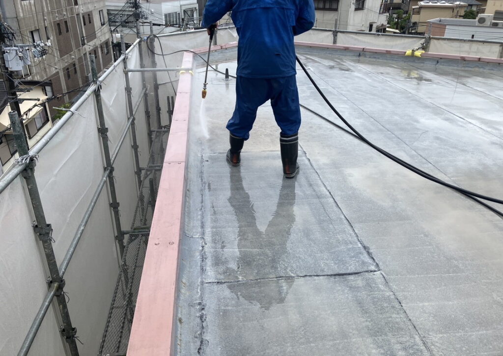 現場親方ブログ2025.09.05伊丹市 ビルの屋上 隅々まで高圧洗浄高圧洗浄こんにちは!にこにこ伊丹店です本日は伊丹市にあります ビルの屋上で高圧洗浄を行っております。落ちにくい汚れも雨の日は汚れが水分を含んでいるので落ちやすくなっています!!雨の日は洗浄日和!!隅々まで汚れを洗い流していきます。