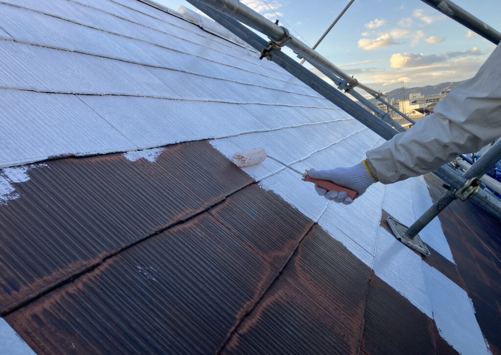 現場親方ブログ2025.12.04伊丹市 U様宅 丁寧に屋根下塗り屋根下塗りこんにちは!にこにこ伊丹店です本日は伊丹市にお住いのU様のお宅にて屋根の下塗りを行っております。しっかりとたっぷりの塗料を使って塗っております。