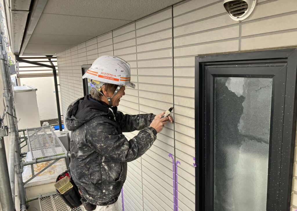 本日の写真は シーリングの撤去・プライマー塗布・シーリング充填の場面を撮影しました!