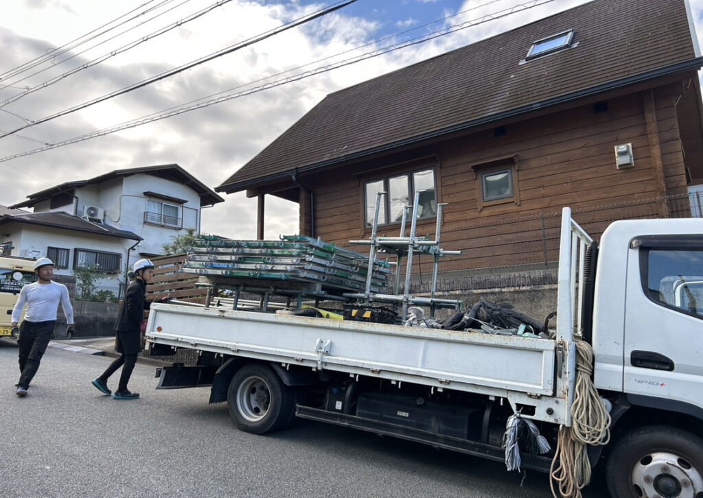 現場親方ブログ2025.10.24猪名川町 N様宅 工事スタートまずは足場!足場組立こんにちは!にこにこ猪名川店です本日は猪名川町にお住いのN様のお宅にて足場組立を行っております。安心安全に工事を進めていくためにも足組み立ては重要です!!本日も皆様 ご安全に!!