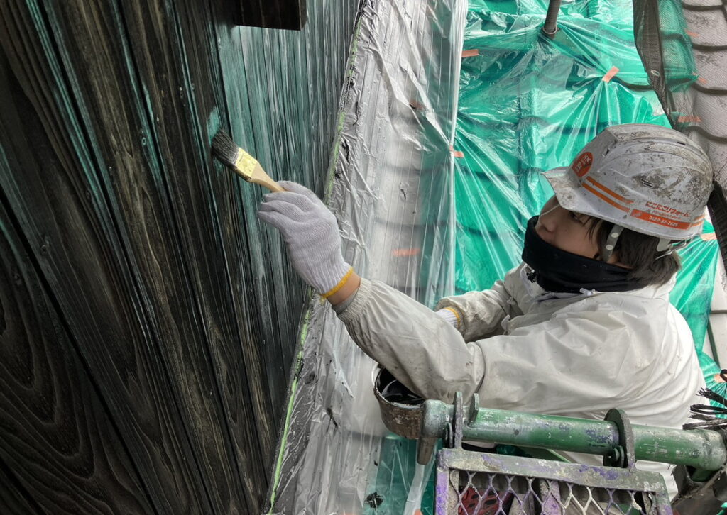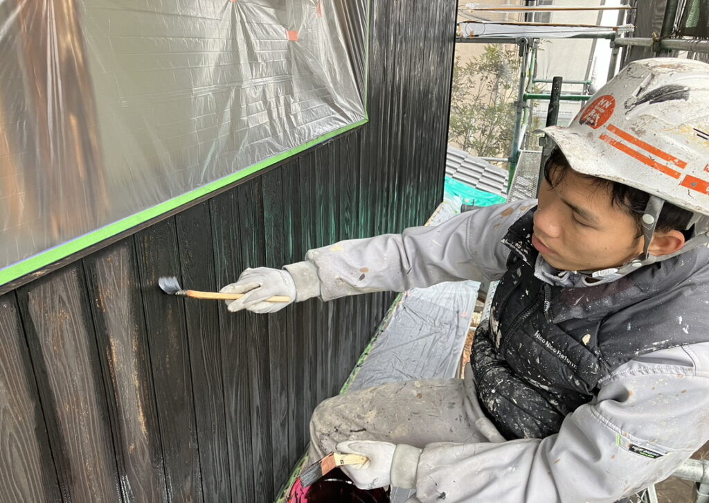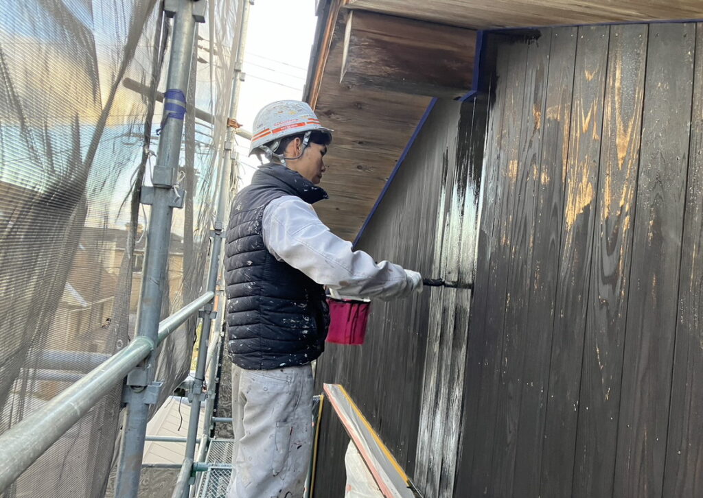 現場親方ブログ2025.12.15猪名川町白金 K様宅 外壁下塗り外壁下塗りこんにちは!にこにこ川西猪名川店です本日は猪名川町白金にお住いのK様のお宅にて外壁の下塗りを行っております。自然によい塗料を隅々まで丁寧に作業をおこなっております
