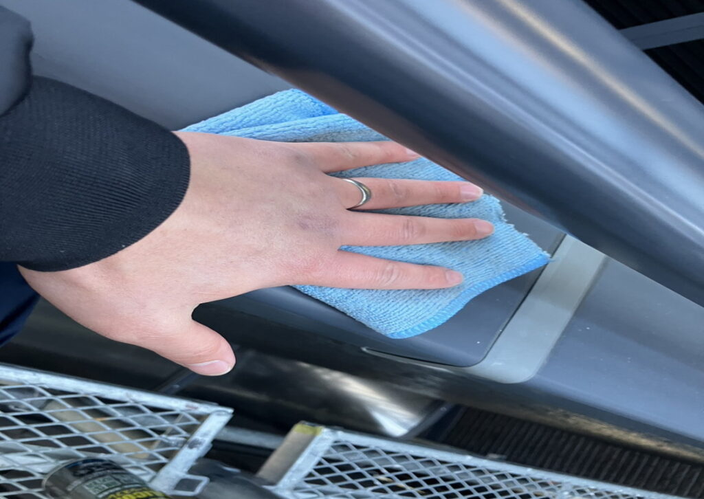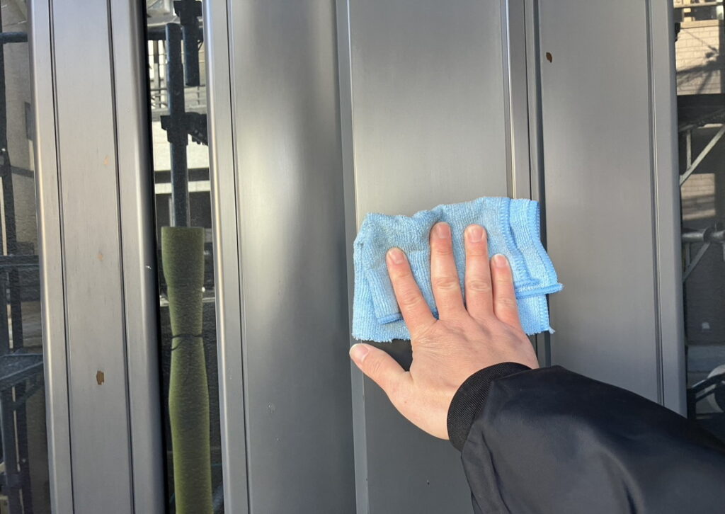 現場親方ブログ2025.12.05神戸市 N様宅 きれいに磨き上げます拭き掃除こんにちは!にこにこ神戸北店です本日のお写真は神戸市にお住いのN様のお宅のアルミのドアやバルコニーの手すりなどを掃除している場面を撮影しました。艶を出すためにシリコンスプレーで隅々まで磨いております。
