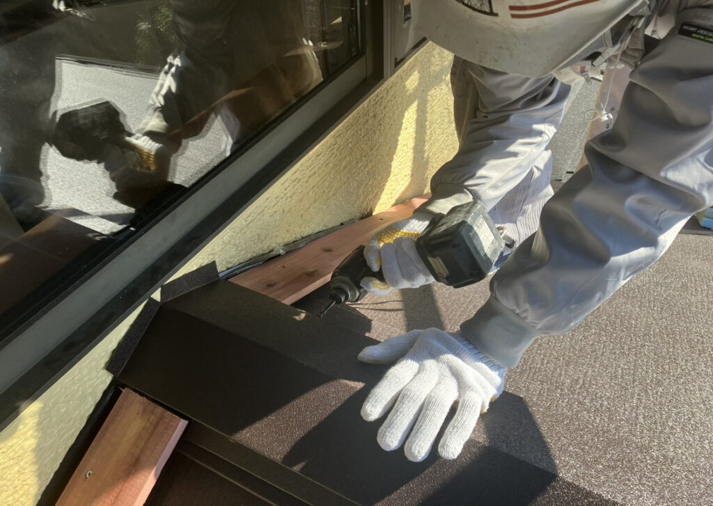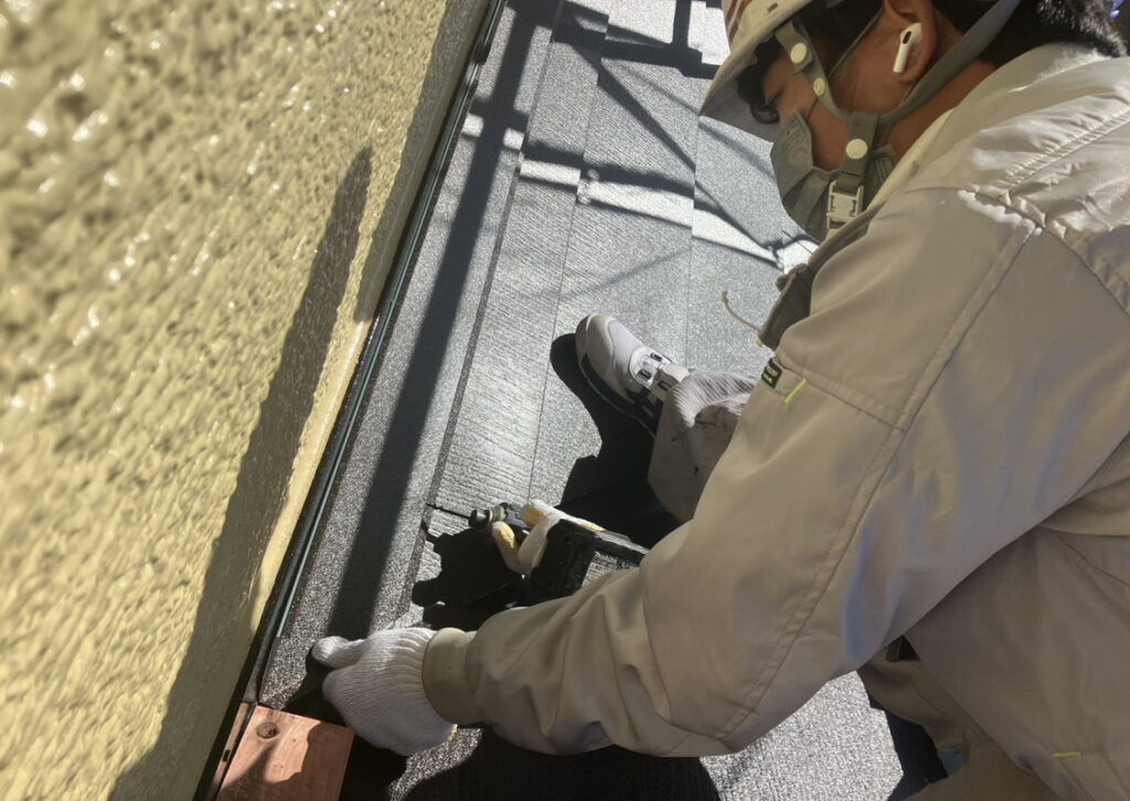 現場親方ブログ2025.12.05宝塚市 O様宅 心まっすぐに工事を行います!屋根工事こんにちは!にこにこ屋根班です本日は宝塚市にお住いのO様のお宅にて雨押さえ取付と棟取付を行っています。丁寧に一つ一つの工程を行っております。