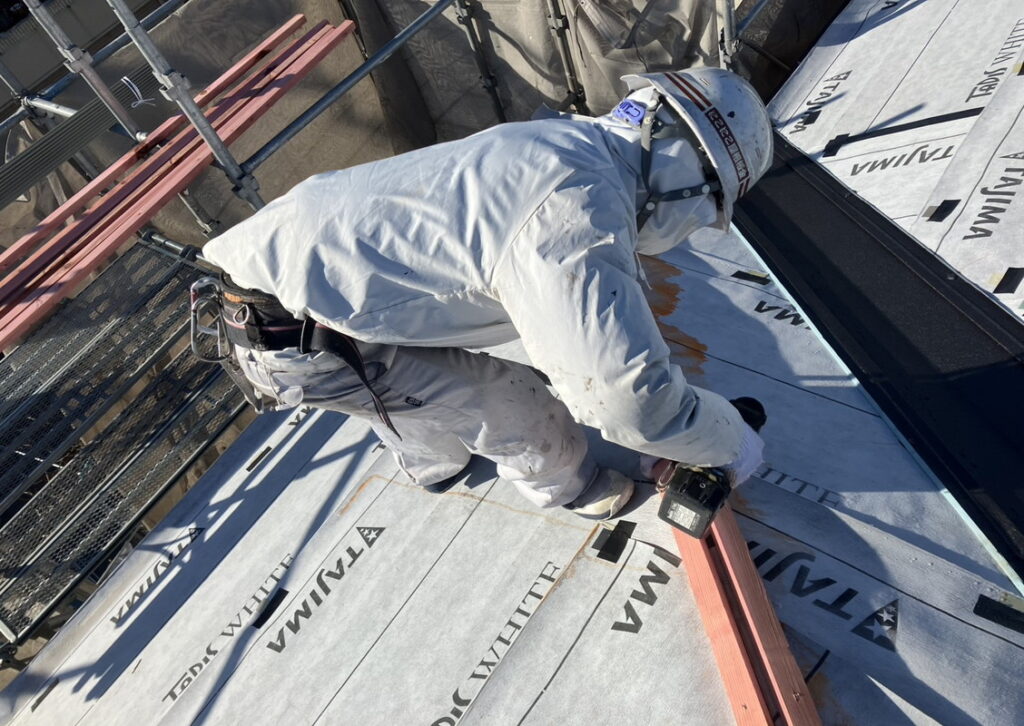現場親方ブログ2026.01.29神戸市 S様宅 棟下地取付 本体葺き屋根工事こんにちは!屋根班です本日の写真は 神戸市にお住いのS様のお宅にて 棟下地取付と本体葺きを行っている写真です。屋根の上なので一つ一つの作業を安全を確認しながら行っていきます。