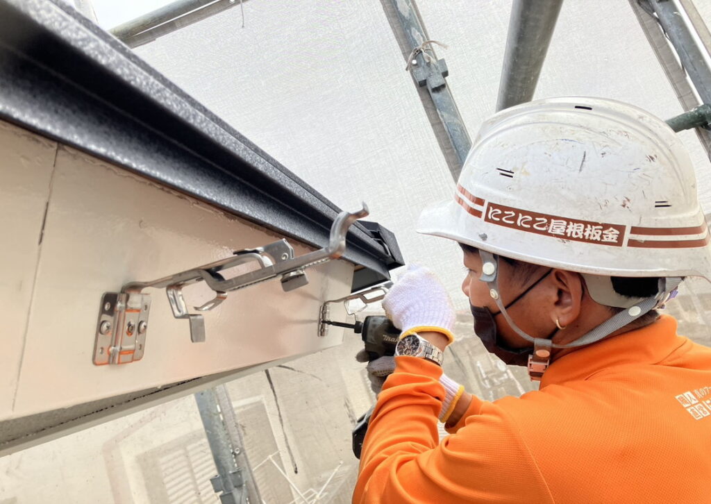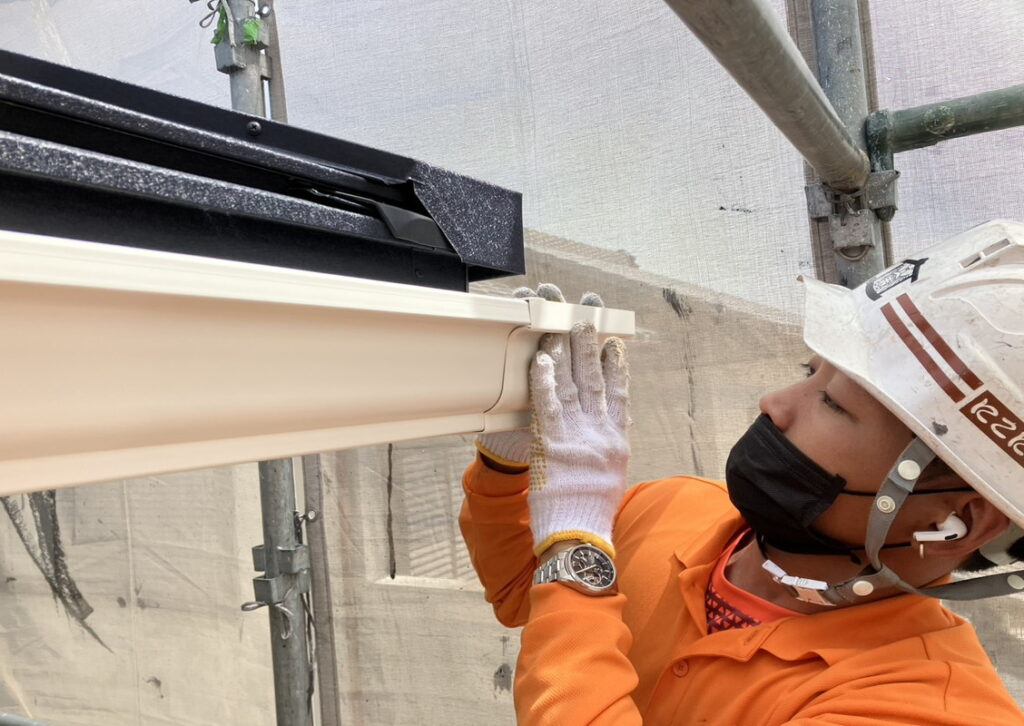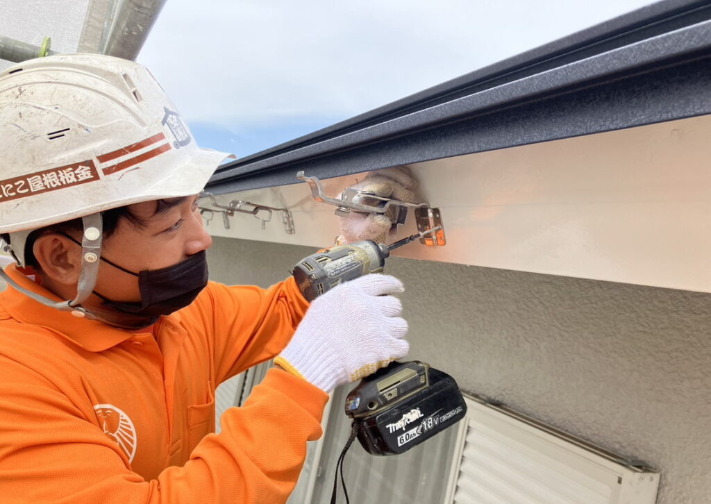 現場親方ブログ2026.04.06三田市 K様宅 樋の金具取付&軒樋取付軒金具取付樋金具取付・軒樋取付・竪樋のT足取付こんにちは!三田市で地域密着で頑張ってます、にこにこリフォーム三田店の代表高田でございます。どんな現場でも、一軒一軒「自分の家」だと思って向き合い工事を行ってます!勾配調整をおこない、ステンレス製の受け金物を550ぴっちで丁寧に固定しました!軒金具取付竪樋のT足取付軒樋取付