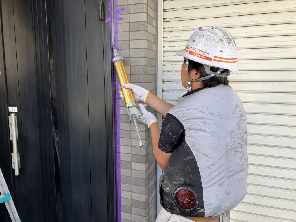 現場親方ブログ2025.07.19尼崎市 G様邸 シーリング工事続きシーリング工事二日目こんにちは!にこにこリフォーム 宝塚尼崎店です!本日はシーリング工事二日目です。南殿君昨日に続いて頑張っています!将来が楽しみな若手職人です‼次回は高圧洗浄です!