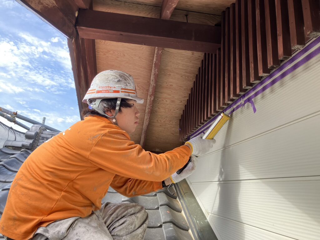 現場親方ブログ2025.11.24宝塚市 K様邸 シーリング工事シーリング工事こんにちは!にこにこリフォーム 宝塚尼崎店です!本日はK様邸にてシーリング工事を行いました。水が入らないようにするとても大事な工程です。新人の南殿くんが4月に比べるとかなり仕事が出来るようになりました!毎日の積み重ねがとても大事ですね!