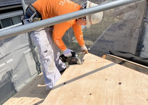 現場親方ブログ屋根工事 こんにちは!屋根班です 本日は尼崎市にお住いのH様のお宅にて屋根工事を行っております。 屋根の撤去・コンパネ張り・ルーフィング張り・唐草取付の場面を撮影しました。 一つ一つの心まっすぐに行っております。