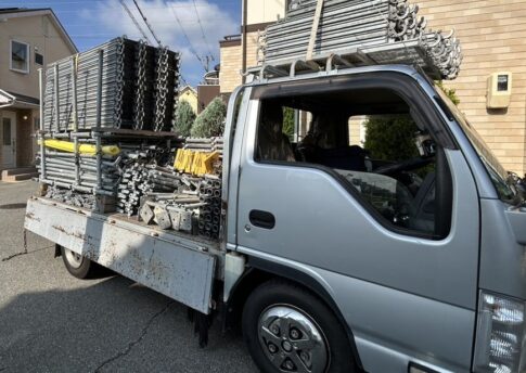 現場親方ブログ足場組立 こんにちは!にこにこ伊丹店です 本日は伊丹市にお住いのY様のお宅にて 足場組立を行っております。 次の工程が安全に進めれるように足場にも階段を付けます!