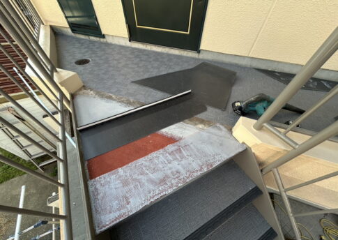 現場親方ブログ階段養生 こんにちは!にこにこ伊丹店です 本日は伊丹市にお住いのY様のお宅にて階段の養生を行っております。 塗料が付着しないように隙間なく専用のシートを使い養生を行っております。