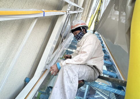 現場親方ブログ養生 こんにちは!にこにこ伊丹店です 本日は伊丹市にお住いのH様のお宅にて養生を行っております。 塗料が付着しないようにきっちりと丁寧に養生を行っております。 本日も皆様ご安全に!!