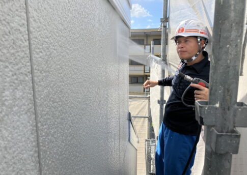現場親方ブログ高圧洗浄・破風板補修 こんにちは!伊丹店です 本日は伊丹市にお住いのO様のお宅にて高圧洗浄と破風板補修を行っております。 しっかりと隅々まで行っております。