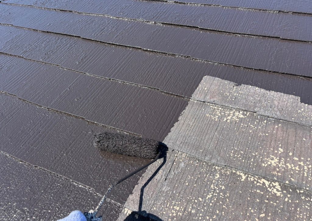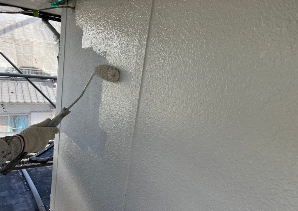 そして、いよいよ仕上げ塗り(上塗り-うわぬり)です。中塗りの段階でも仕上がっているぐらい綺麗ですが、3回塗る事で塗膜が厚くなり、塗料の性能が100%になります。