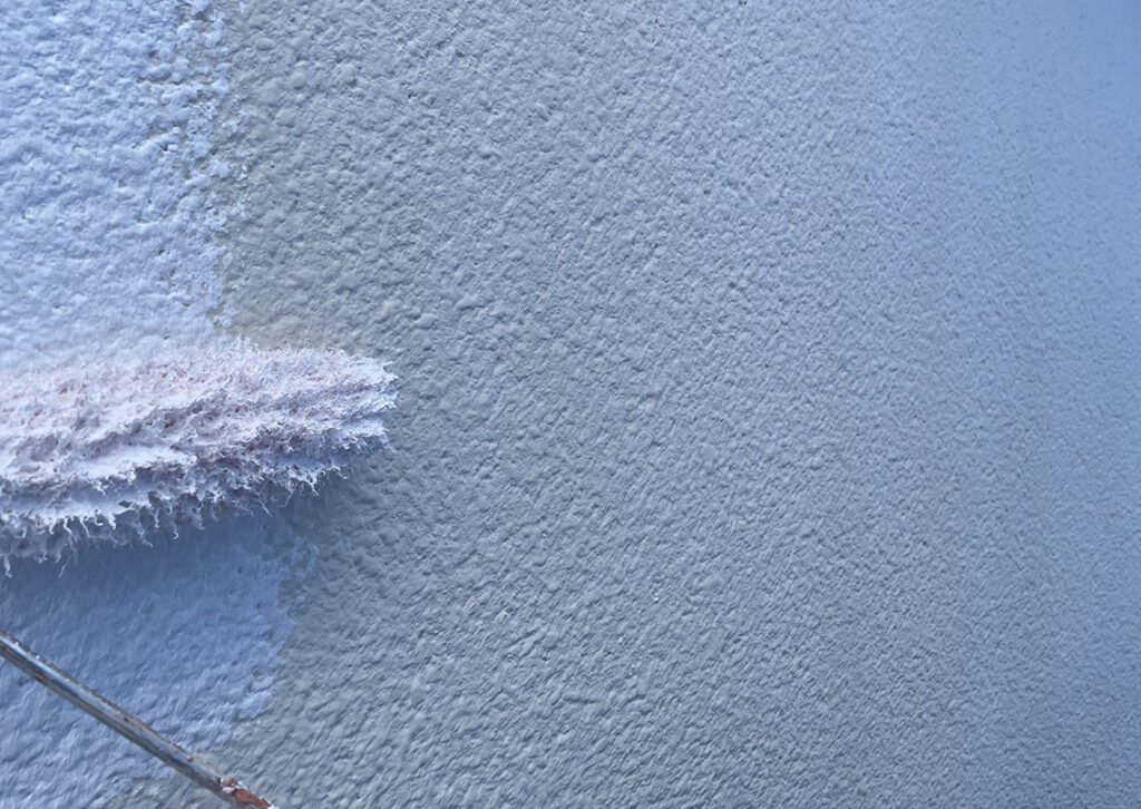 そして、いよいよ仕上げ塗り(上塗り-うわぬり)です。時には中塗りでしっかりと塗ったのに、経年劣化等により、傷みが激しい場合には、中塗りでもまだ下が透けてしまうこともあります。