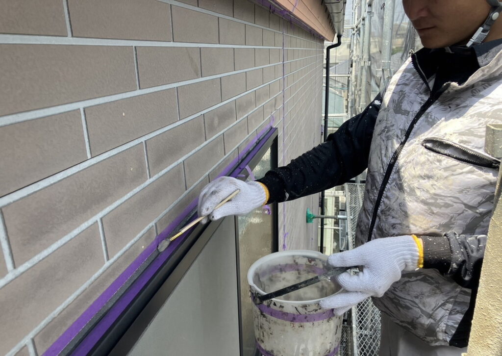 下塗り(したぬり)といいます。外壁の種類により、下塗り塗料はシーラとフィラーと2種類の下塗り塗料に分かれますが、下地材に適した塗料を使用します。