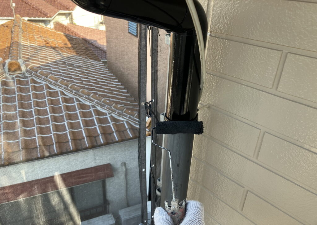 きれいに下塗り材の上に色がのっていきます。しかし、傷んだ外壁の場合は、外壁材に吸い込まれていくこともあり、規定以上のたくさんの塗料を使うこともあります。綺麗に長持ちするように心込めて塗ります。