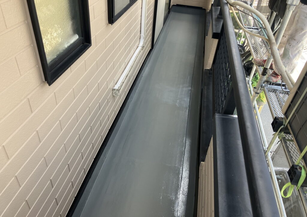 そして、いよいよ仕上げ塗り(上塗り-うわぬり)です。中塗りの段階でも仕上がっているぐらい綺麗ですが、3回塗る事で塗膜が厚くなり、塗料の性能が100%になります。