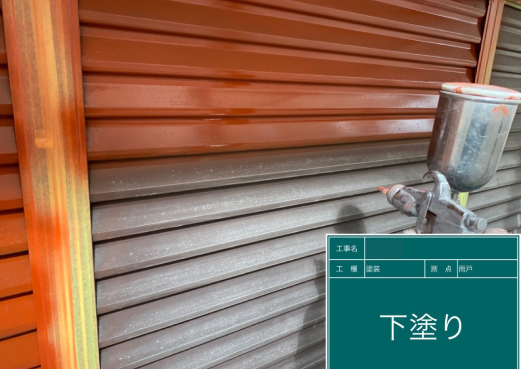 外壁屋根塗装同様、全体をしっかり高圧洗浄とケレンをしたら、1回目の塗装です。下塗り(したぬり)といいますが鉄部の場合は。さび止めをぬります。外壁塗装同様、原則、下塗り(さび止め)、中塗り、仕上げ塗り(上塗り)の3回です。(下写真)