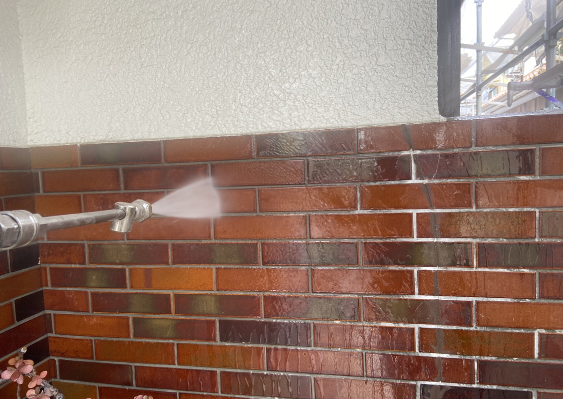 塗装の前に高圧洗浄で、コケや汚れ、黒ずみ、旧塗膜等をしっかり落としていきます!高圧洗浄でしっかりと旧塗膜や汚れを落としておくことで、塗料の密着性を良くする効果を発揮できるからです。