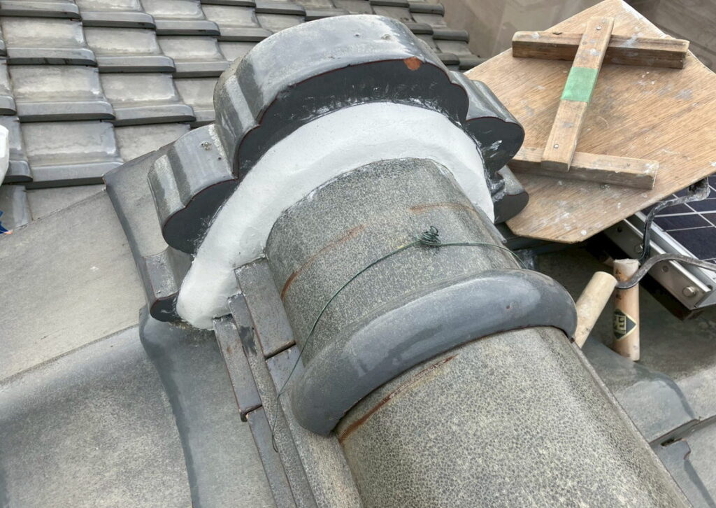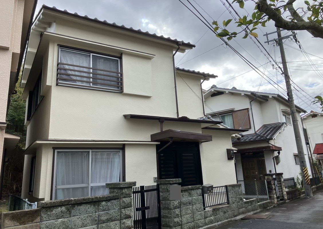 屋根瓦の漆喰も補修し、外壁も元のクリーム色が新たに蘇りました!