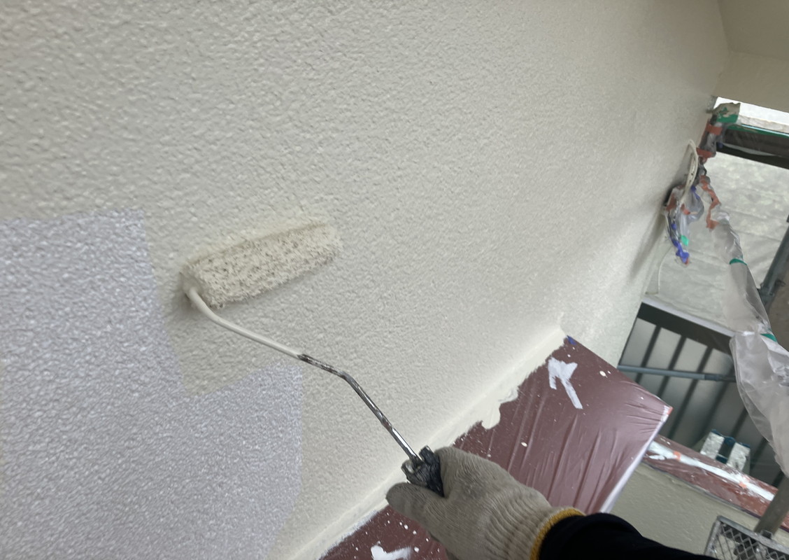 そして、いよいよ仕上げ塗り(上塗り-うわぬり)です。中塗りの段階でも仕上がっているぐらい綺麗ですが、3回塗る事で塗膜が厚くなり、塗料の性能が100%になります。