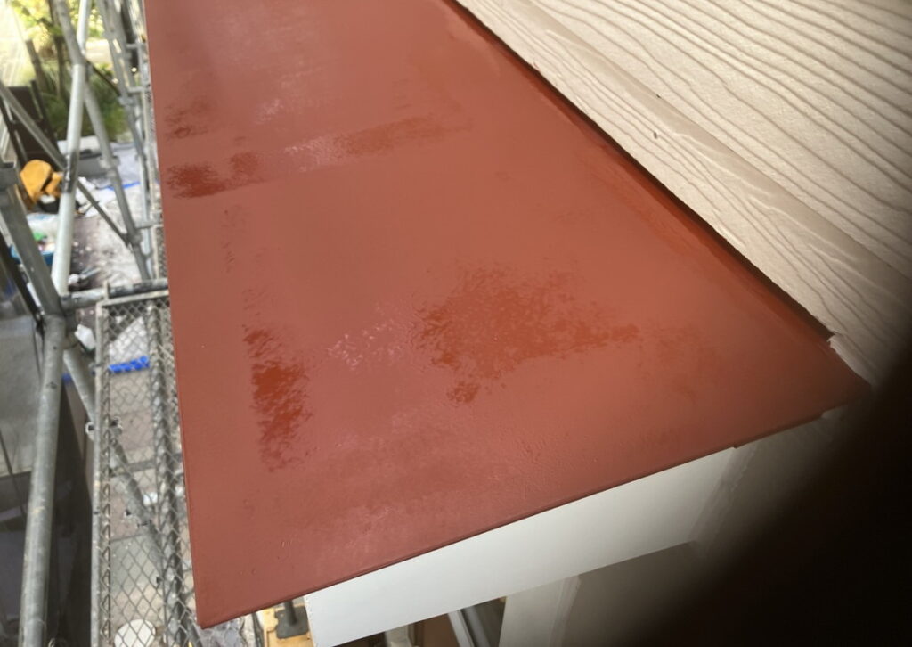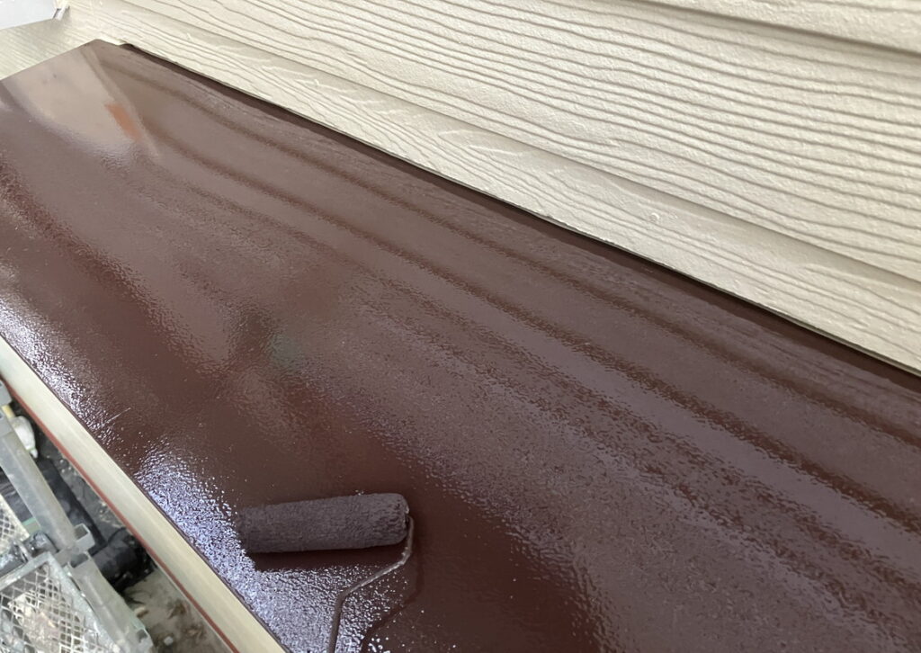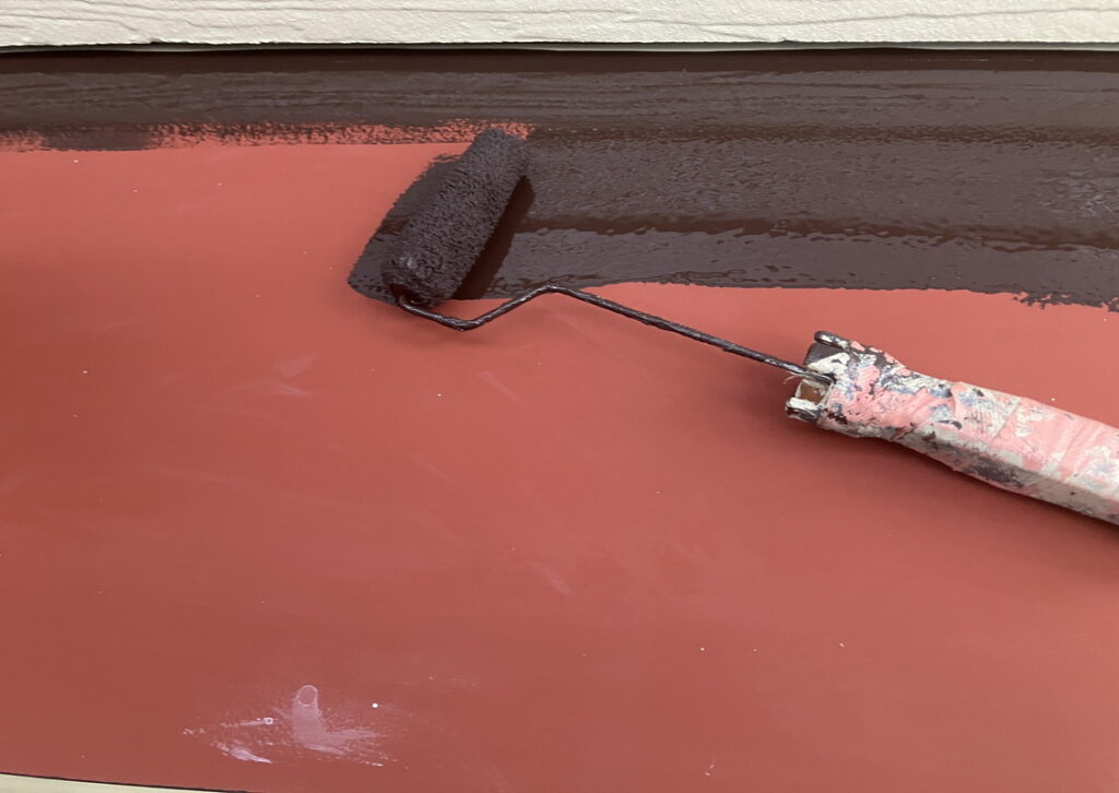 外壁屋根塗装同様、全体をしっかり高圧洗浄とケレンをしたら、1回目の塗装です。下塗り(したぬり)といいますが鉄部の場合は。さび止めをぬります。外壁塗装同様、原則、下塗り(さび止め)、中塗り、仕上げ塗り(上塗り)の3回です。(下写真)