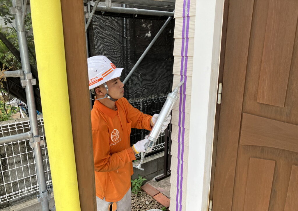 下塗り(したぬり)といいます。外壁の種類により、下塗り塗料はシーラとフィラーと2種類の下塗り塗料に分かれますが、下地材に適した塗料を使用します。
