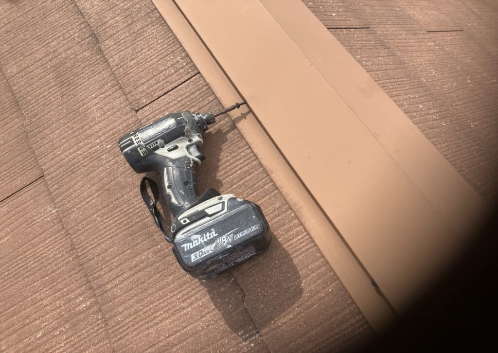 棟が飛ばないようしっかり固定すること、また、ビス頭をコーキングしてしっかり水の侵入を防ぎます。