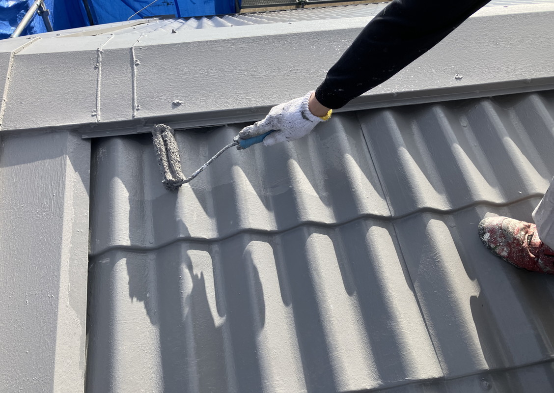 屋根中塗りの様子