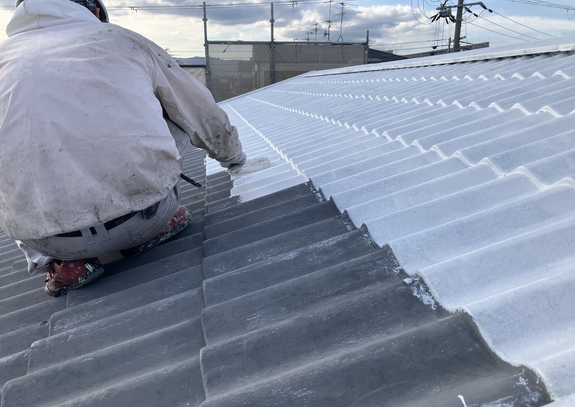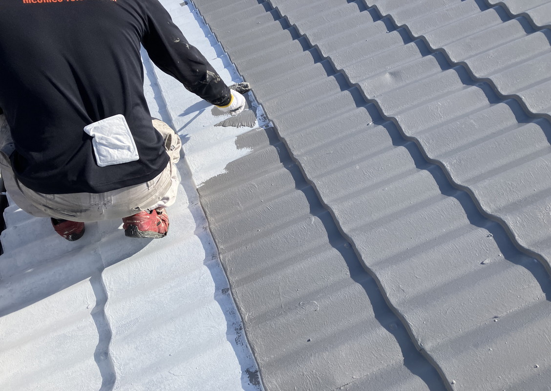 屋根上塗りの様子