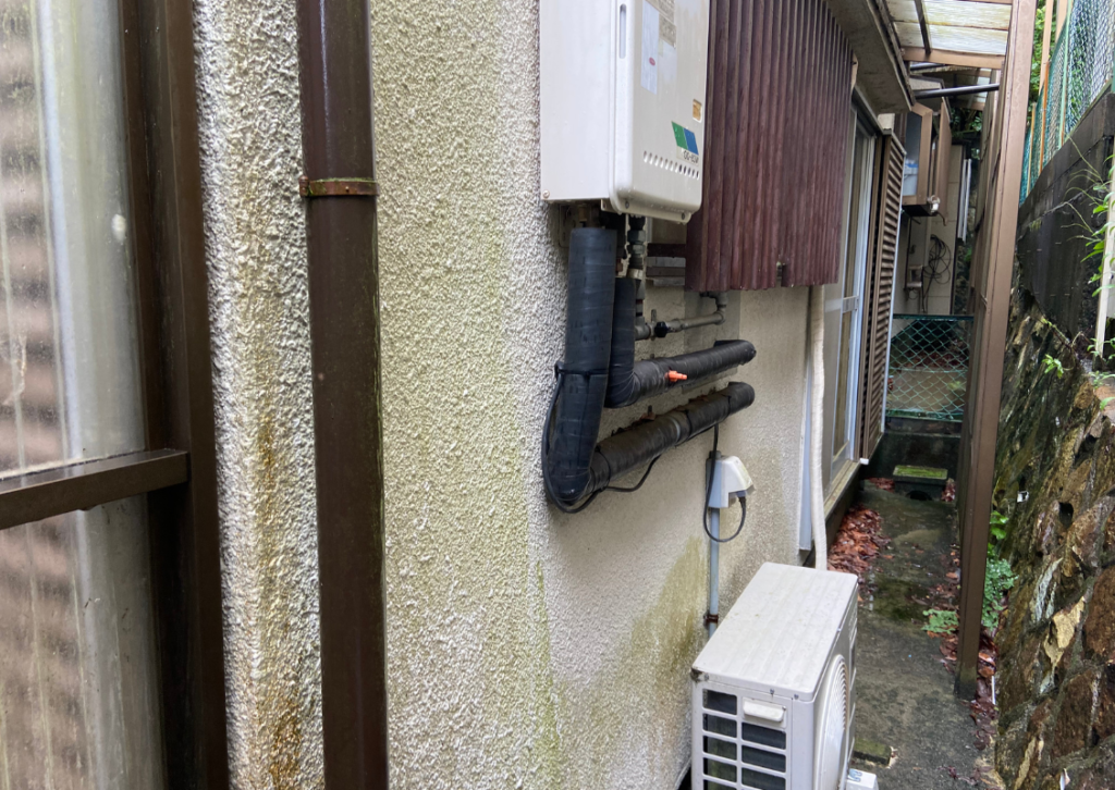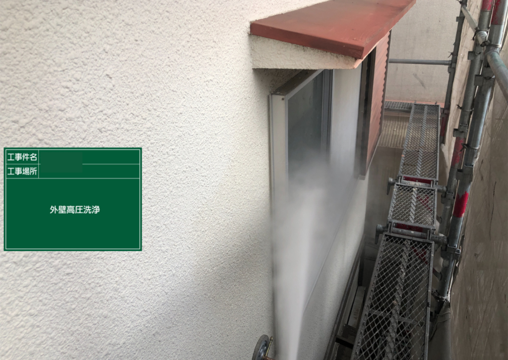 まず、塗装の前に高圧洗浄で、コケや汚れ、黒ずみ、旧塗膜等をしっかり落としていきます!高圧洗浄でしっかりと旧塗膜や汚れを落としておくことで、塗料の密着性を良くする効果を発揮できるからです。
