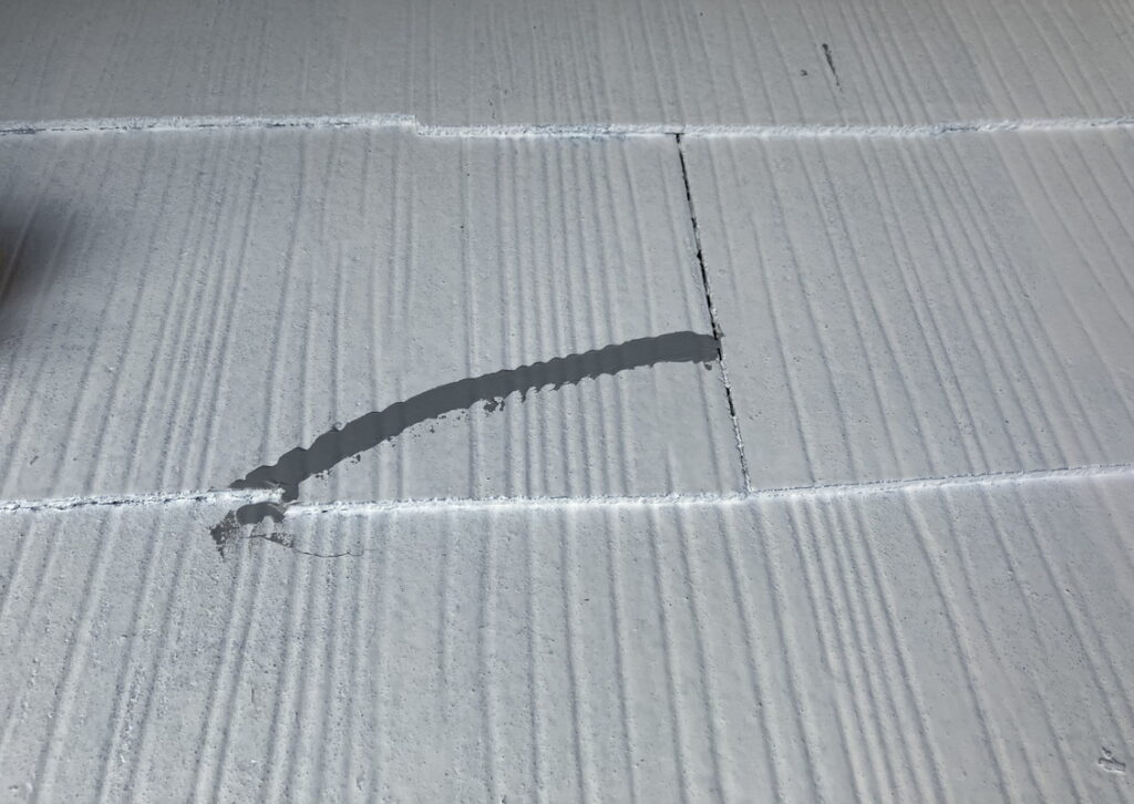 壁と壁のつなぎ目を目地といいます。シーリングが経年劣化によりひび割れ等がみられる場合は補修します。(下写真)