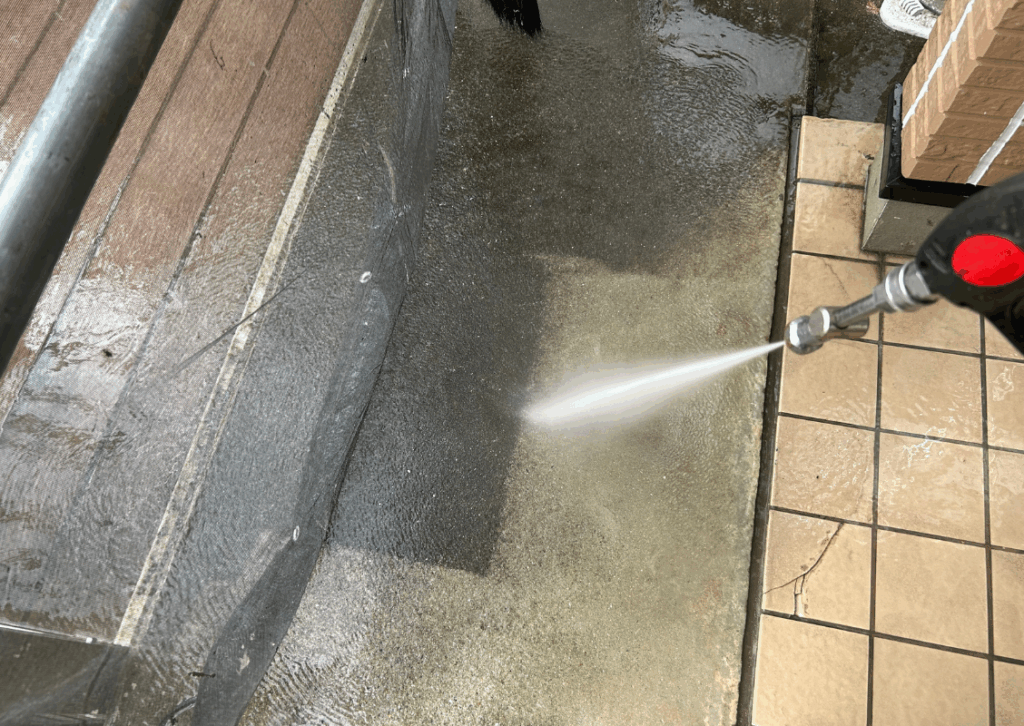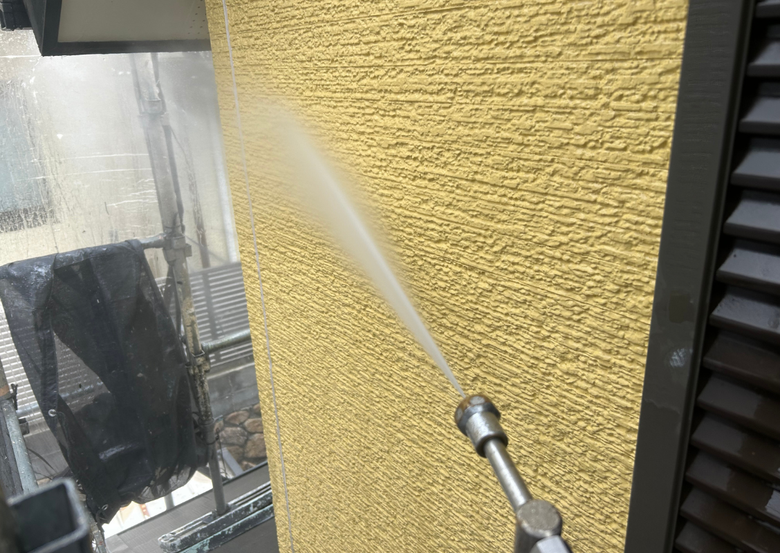 塗装の前に高圧洗浄で、コケや汚れ、黒ずみ、旧塗膜等をしっかり落としていきます!高圧洗浄でしっかりと旧塗膜や汚れを落としておくことで、塗料の密着性を良くする効果を発揮できるからです。