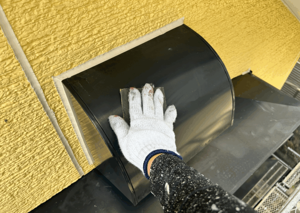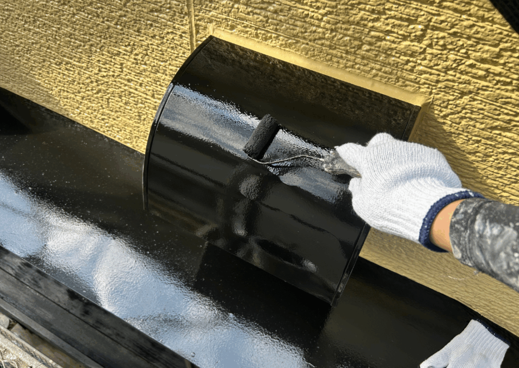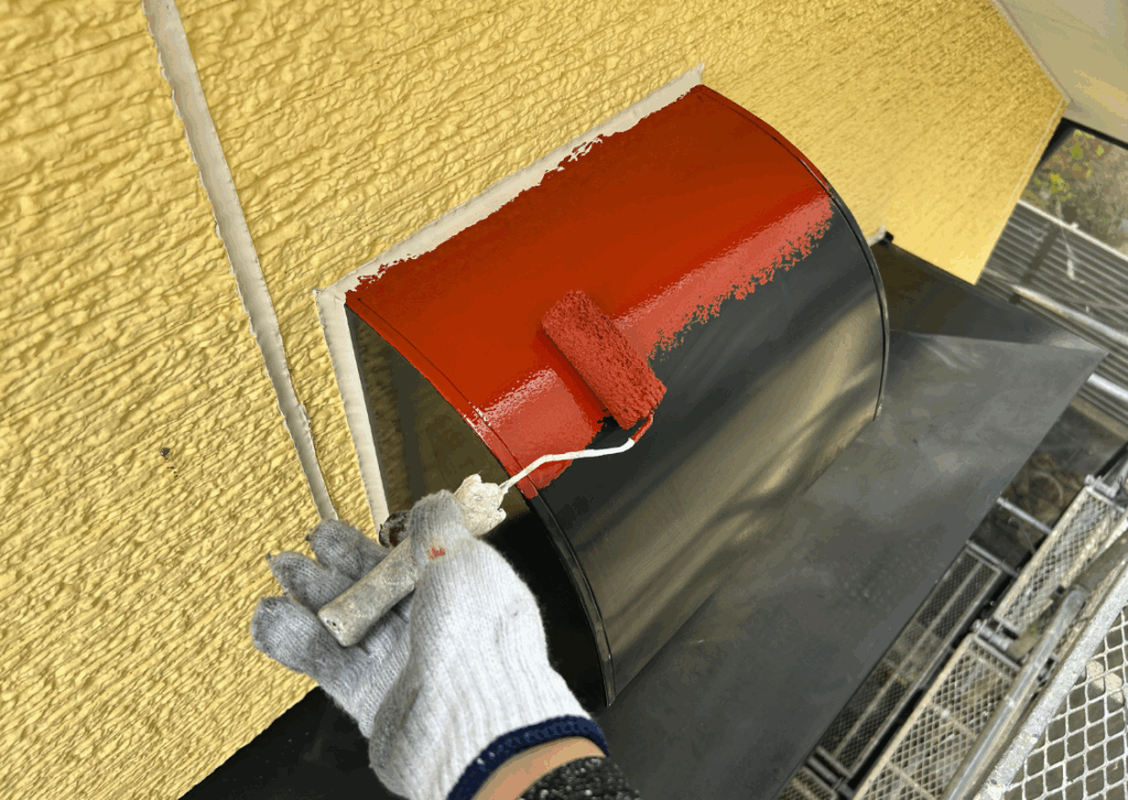 外壁屋根塗装同様、全体をしっかり高圧洗浄とケレンをしたら、1回目の塗装です。下塗り(したぬり)といいますが鉄部の場合は。さび止めをぬります。外壁塗装同様、原則、下塗り(さび止め)、中塗り、仕上げ塗り(上塗り)の3回です。(下写真)