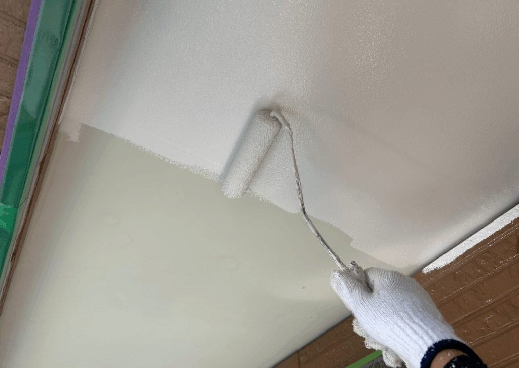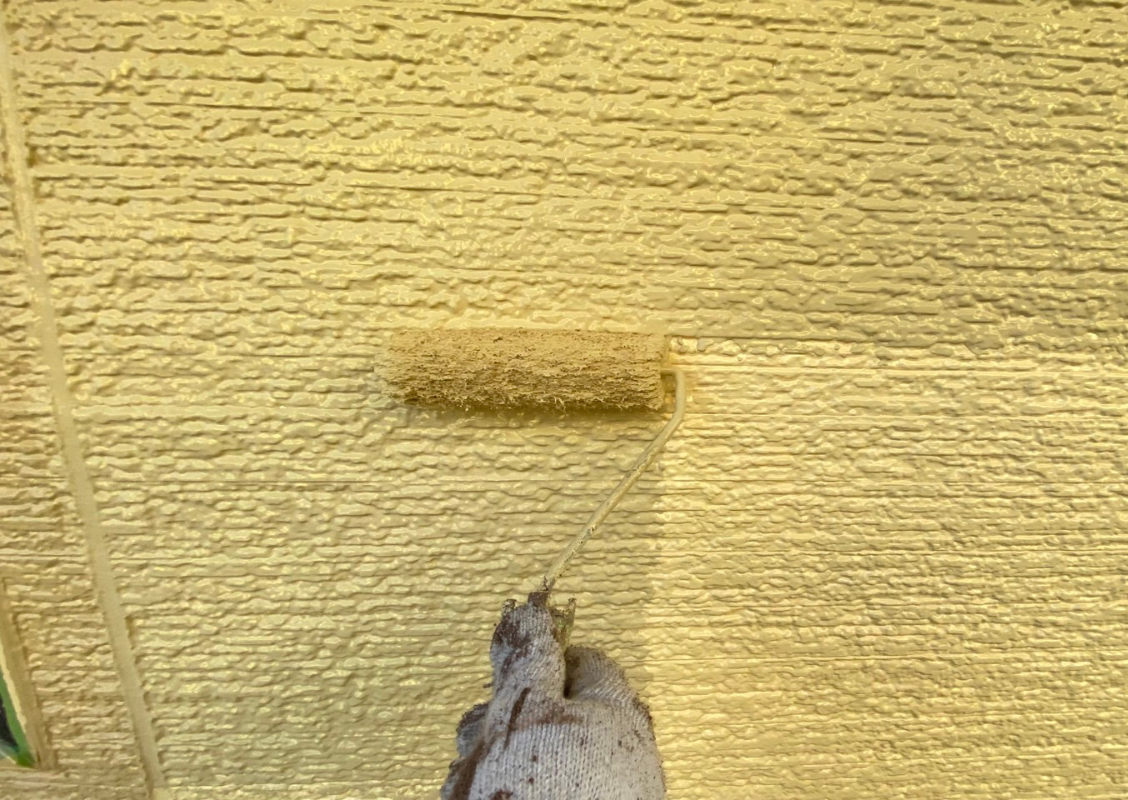 きれいに下塗り材の上に色がのっていきます。しかし、傷んだ外壁の場合は、外壁材に吸い込まれていくこともあり、規定以上のたくさんの塗料を使うこともあります。綺麗に長持ちするように心込めて塗ります。