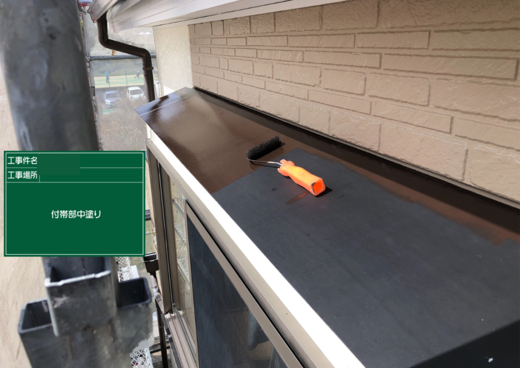 外壁屋根塗装同様、全体をしっかり高圧洗浄とケレンをしたら、1回目の塗装です。下塗り(したぬり)といいますが鉄部の場合は。さび止めをぬります。外壁塗装同様、原則、下塗り(さび止め)、中塗り、仕上げ塗り(上塗り)の3回です。(下写真)
