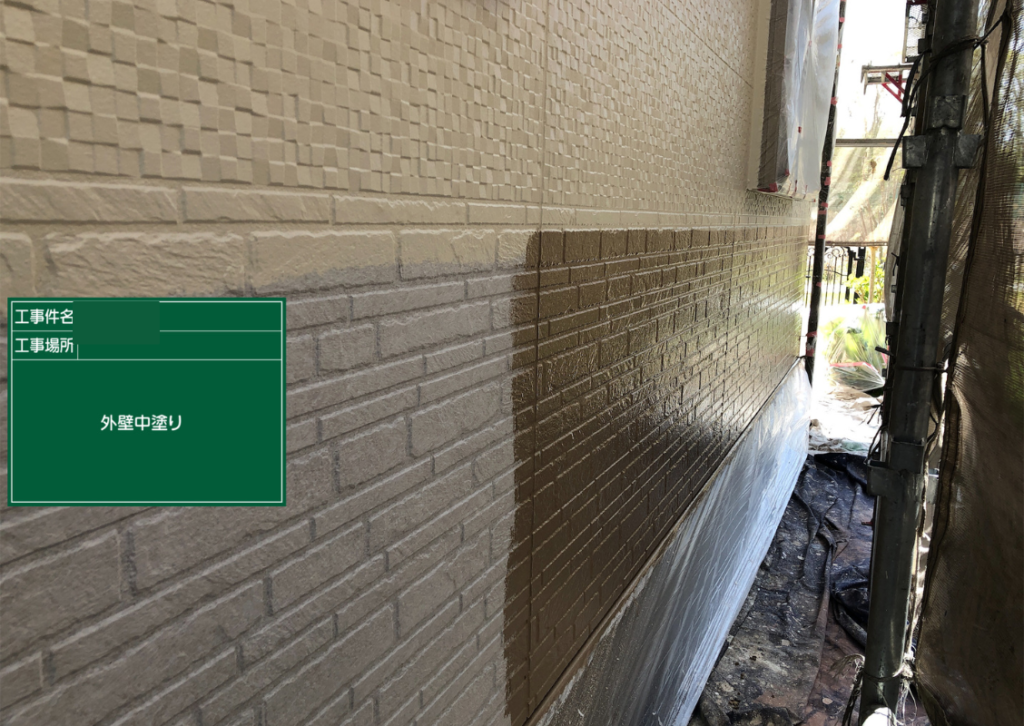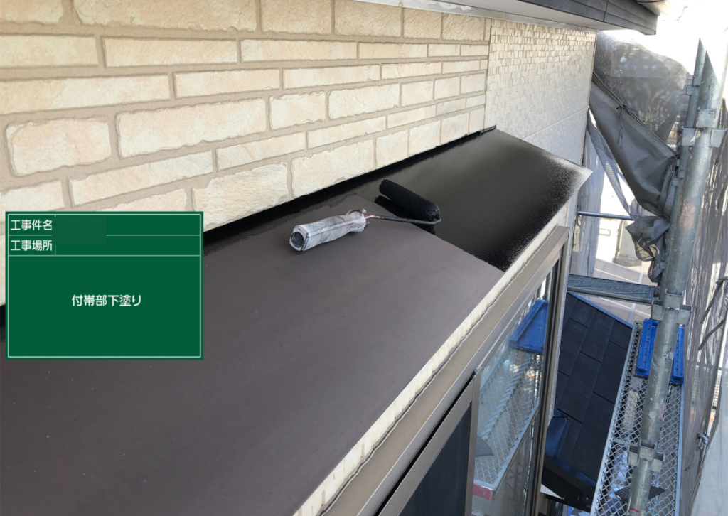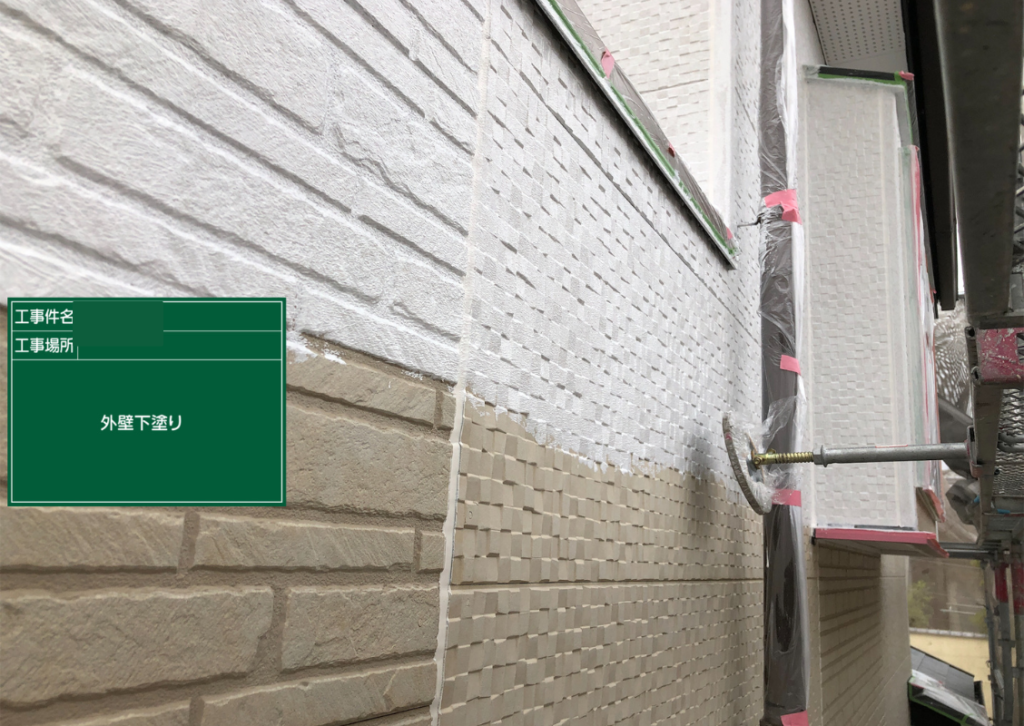 全体をしっかり高圧洗浄したら、1回目の塗装です。下塗り(したぬり)といいます。単層と複層塗料の違いで工程が変わる場合がありますが、原則、下塗り、中塗り、仕上げ塗り(上塗り)の3回です。