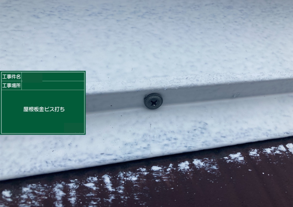 棟が飛ばないようしっかり固定すること、また、ビス頭をコーキングしてしっかり水の侵入を防ぎます。