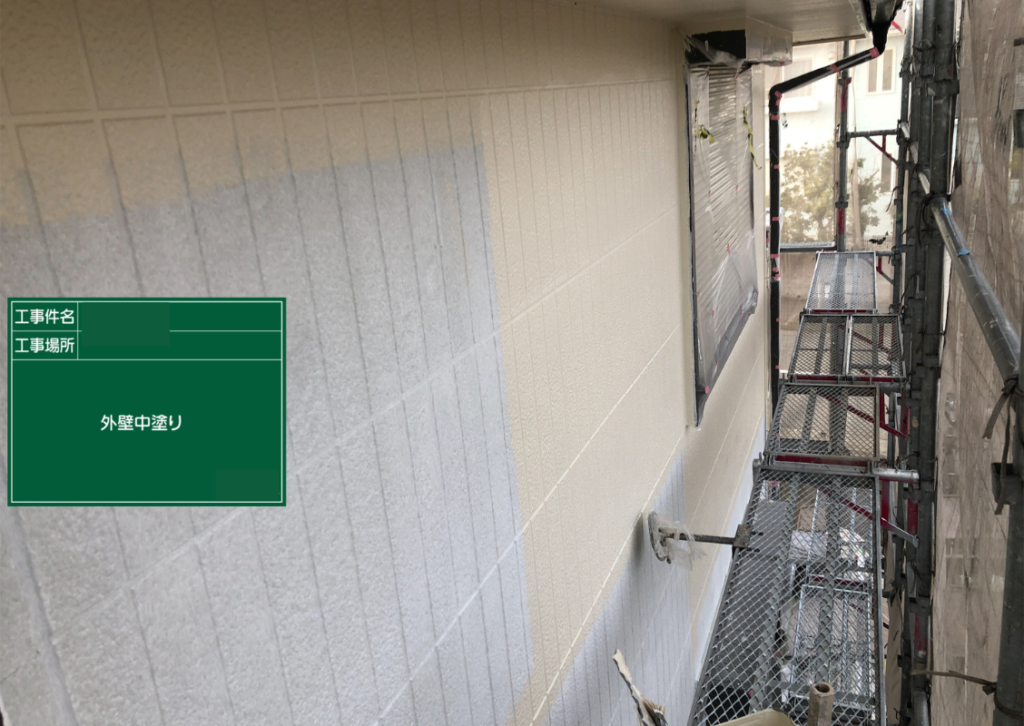 そして、いよいよ仕上げ塗り(上塗り-うわぬり)です。時には中塗りでしっかりと塗ったのに、経年劣化等により、傷みが激しい場合には、中塗りでもまだ下が透けてしまうこともあります。