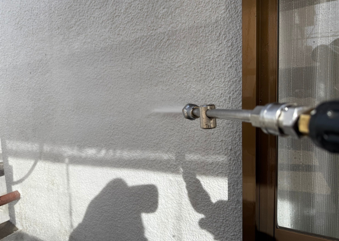 塗装の前に高圧洗浄で、コケや汚れ、黒ずみ、旧塗膜等をしっかり落としていきます!高圧洗浄でしっかりと旧塗膜や汚れを落としておくことで、塗料の密着性を良くする効果を発揮できるからです。