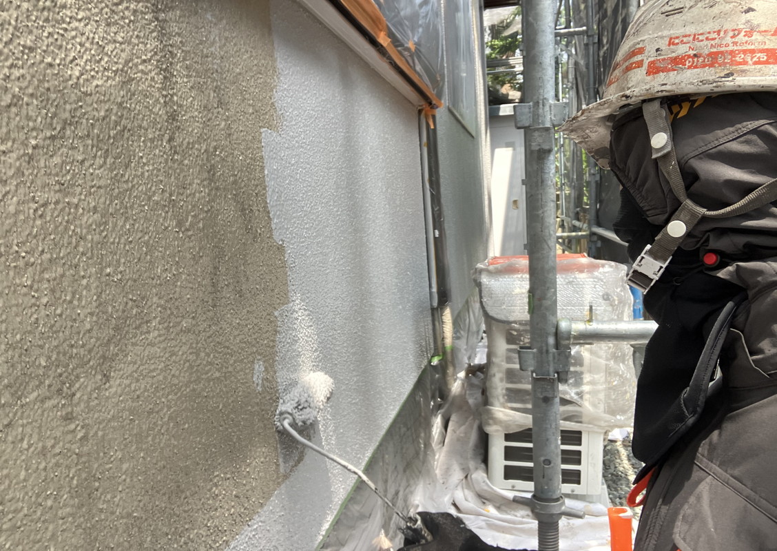 下塗り(したぬり)といいます。外壁の種類により、下塗り塗料はシーラとフィラーと2種類の下塗り塗料に分かれますが、下地材に適した塗料を使用します。