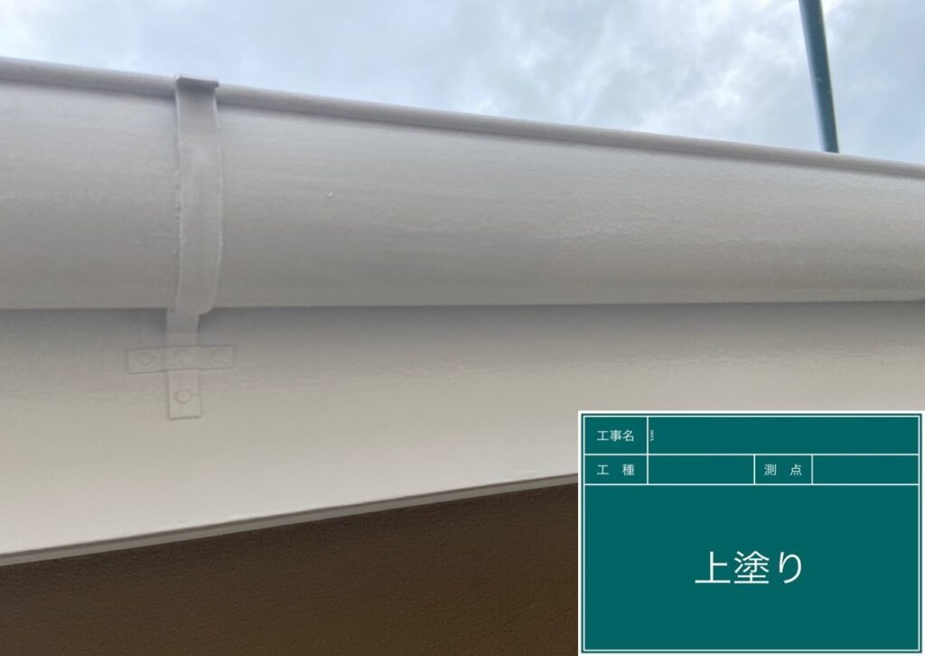 そして、いよいよ仕上げ塗り(上塗り-うわぬり)です。時には中塗りでしっかりと塗ったのに、経年劣化等により、傷みが激しい場合には、中塗りでもまだ下が透けてしまうこともあります。