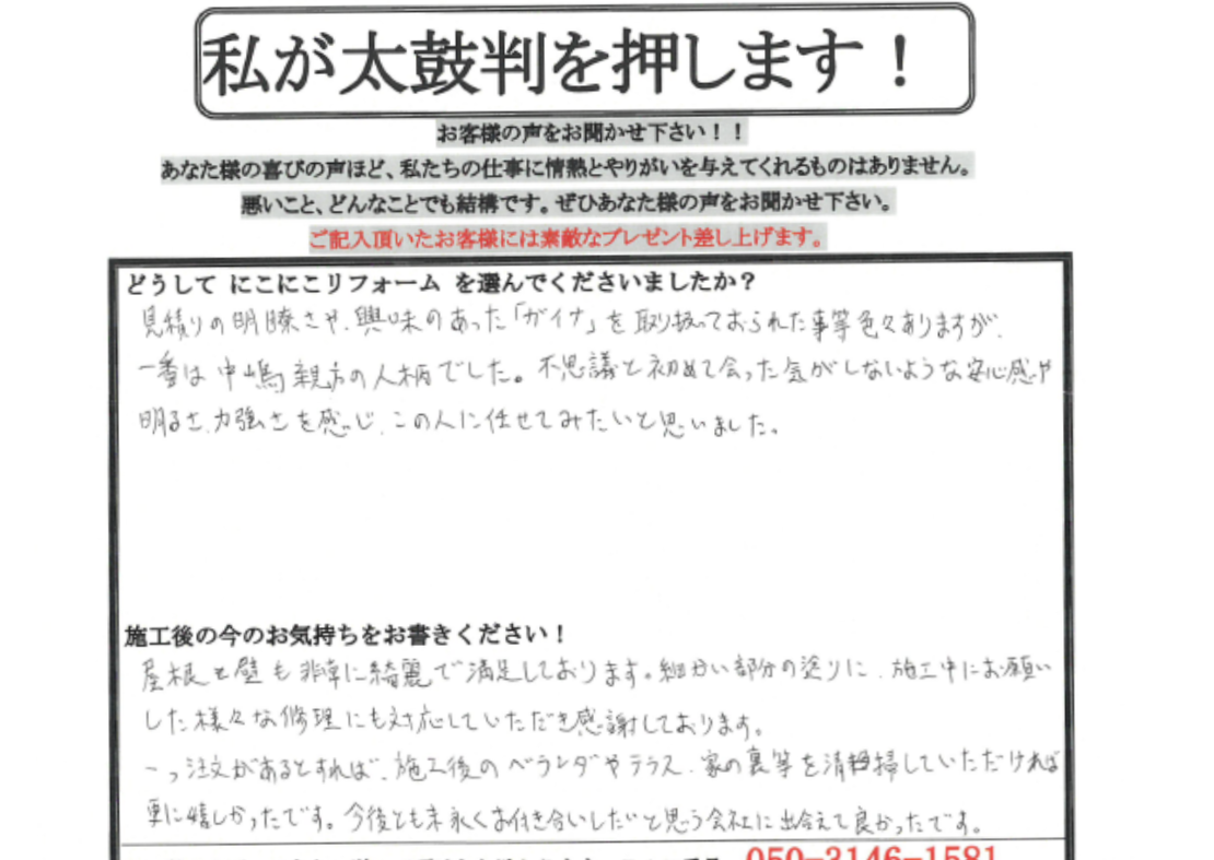 Q. どうしてにこにこリフォームを選んでくださいましたか?