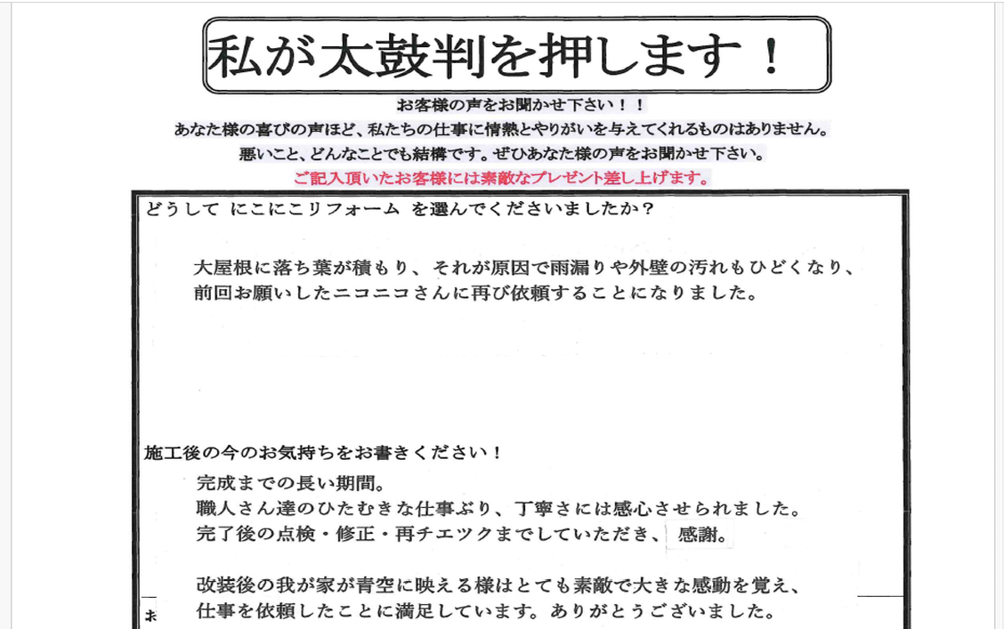 川西市 K様 お客様の口コミをご紹介!